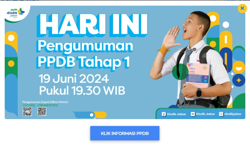 Pengumuman Kelulusan dilaksanakan pada tanggal 19 Juni 2024 melalui website Wilayah PPDB (jabarprov.go.idWilayah PPDB pada tahun lalu pengumuman kelulusan pada jam 14:00 WIB, untuk tahun ini dilaksanakan pada jam 19:30 WIB seperti informasi yang tertera pada gambar berikut