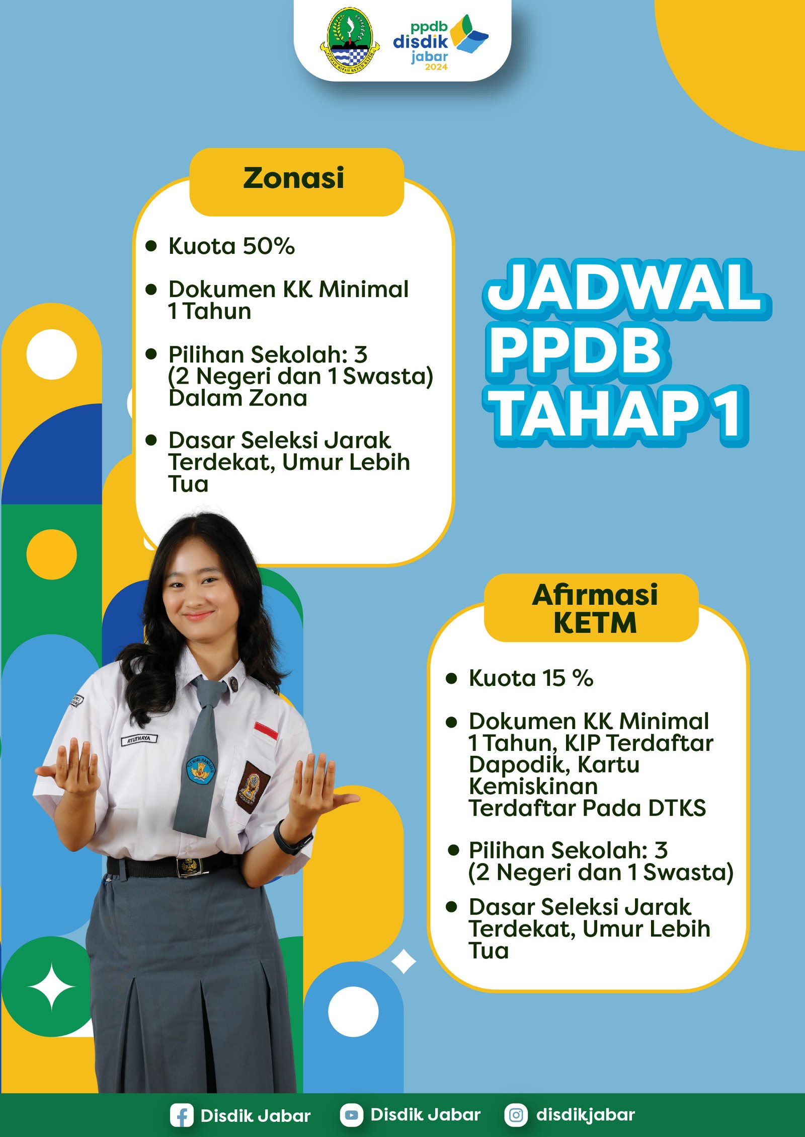 Penerimaan Peserta Didik Baru (PPDB) SMA dan SMK Negeri di Depok atau se-provinsi Jawa Barat untuk tahap pertama (tahap 1) dimulai dari tanggal 3-7 Juni 2024 melalui link secara online. Peserta dapat mendaftarkan dirinya dengan mengclik website https://pendaftaran.ppdb.jabarprov.go.id/ setelah website tersebut terbuka (home page), pendaftar dapat memasukan akun (username & password) yang didapat dari operator Sekolah SMP masing-masing. Pendaftar dapat memilih sekolah SMA atau SMK serta dapat menentukan jalur KETM (jalur siswa kurang mampu) atau jalur Zonasi (jarak sekolah) yang ada di tahap pertama. Untuk Tahap Pertama ini, jalur yang dipilih untuk SMA dan SMK adalah Jalur KETM dan Jalur Zonasi. sedangkan jalur Rapor ada di Tahap kedua.