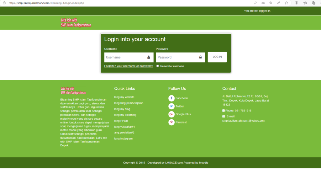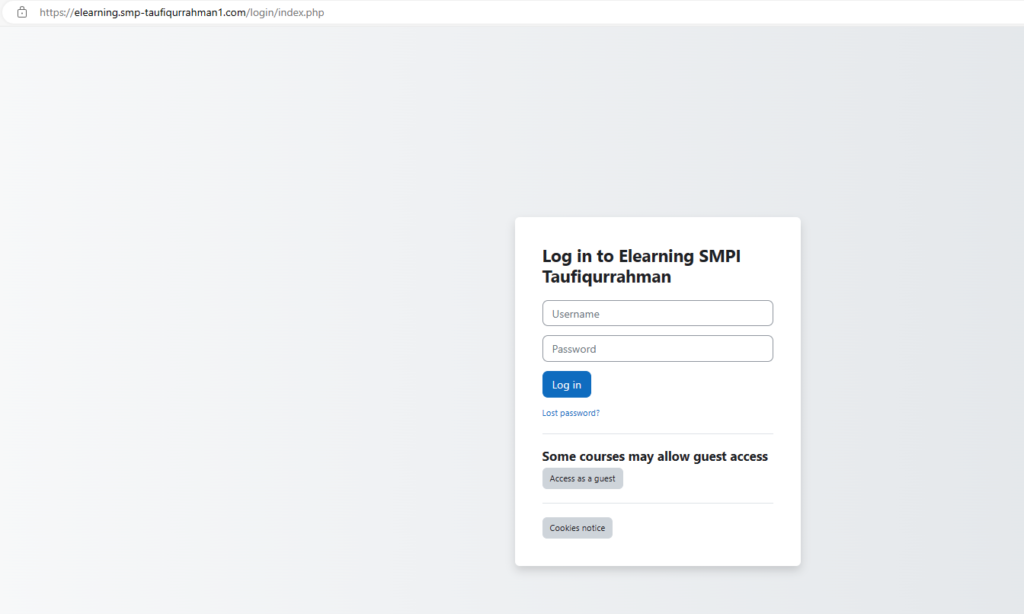 Cara login elearning untuk siswa kelas 8 beda elearning dengan kelas 7. Untuk kelas 8 (Delapan) menggunakan website www.smp-taufiqurrahman1.com selanjutnya pilih elearning, atau dapat menggunakan cara sebagai berikut :