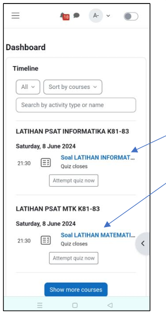 5. Setelah masuk ke layar elearning, contoh klik Soal Latihan PSAT Informatika K8 atau Soal LATIHAN