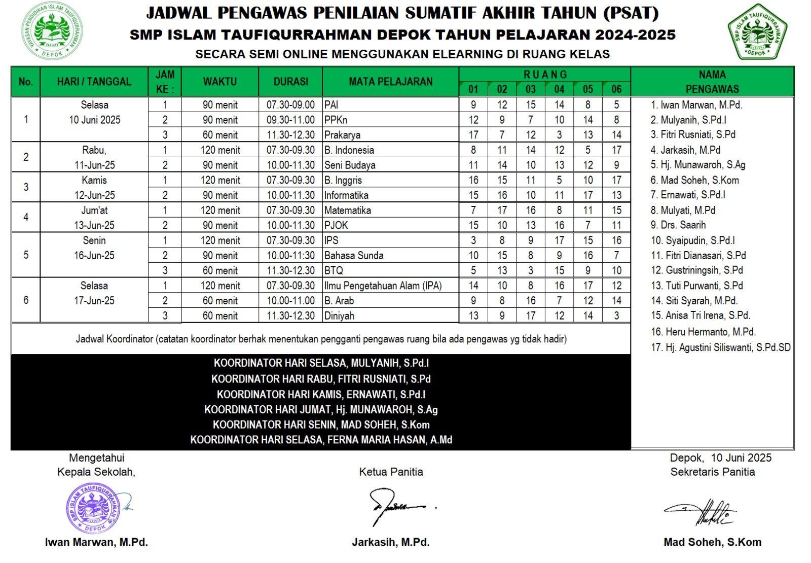 Berikut ini daftar pengawas yang mengawasi ruang PSAJ dari tanggal 10-17 Juni 2025 sebagai berikut :